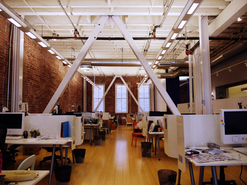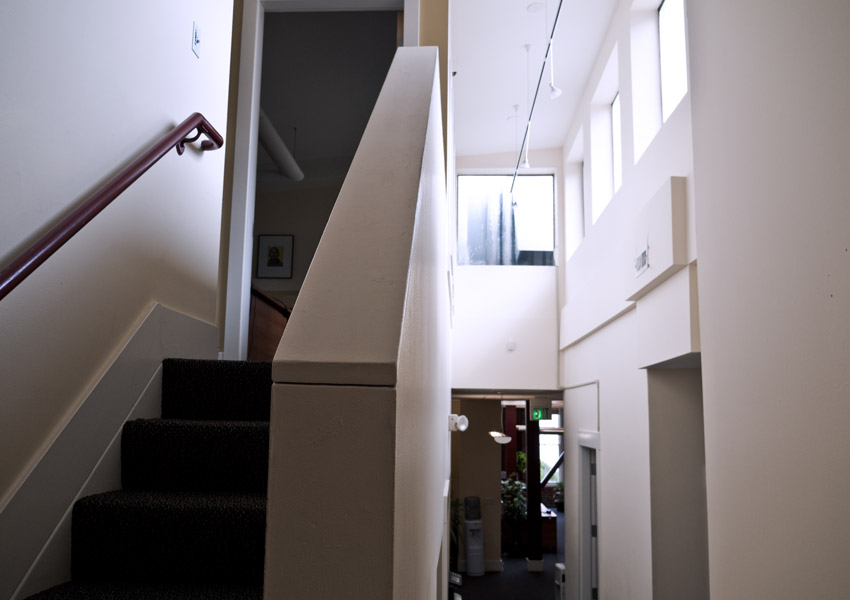 The raised ceiling over the building's south-west corner houses an executive office and adds natural lighting for common areas.