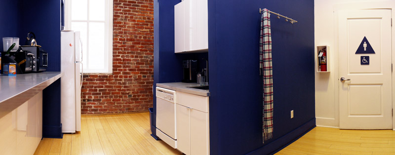 Ancillary to the break room, this counter with sink and cabinets is the perfect place for an additional coffee pot